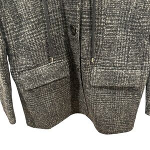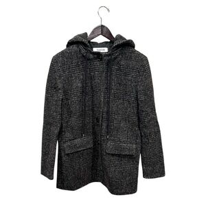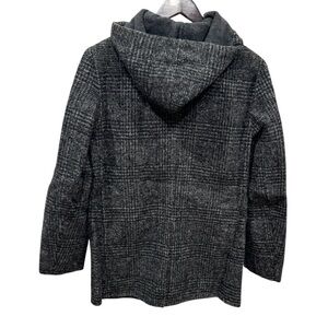 THAKOON Women's Charcoal Wool Blend Hooded Plaid Pattern Coat Size S
