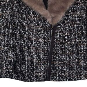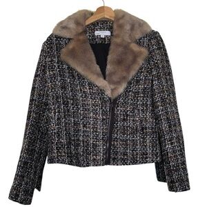 THAKOON Wool Blend Tweed Fur Moto Jacket Coat Biker Wide Notch Collar