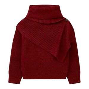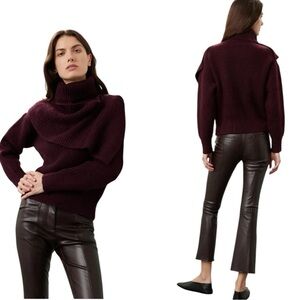 THAKOON Woomen's Burgundy Chunky Scarf Turtleneck Sweater Size XS