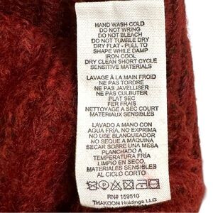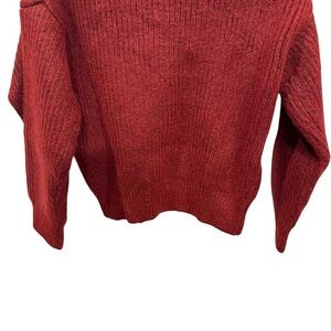 Red knit (45% Polyester, 20% Acrylic, 20% Nylon, 10% Viscose, 5% Wool). Sweater. Long sleeves. Turtleneck. Pull on. Imported.