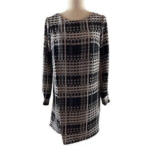 THAKOON for Design Nation Geometric Print Long Sleeve Shift Dress Gray Black