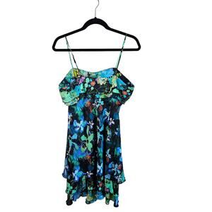 THALIA SODI FLORAL SUMMER DRESS Large Adjust Strap KNEE LENGTH TRIPLE LAYER