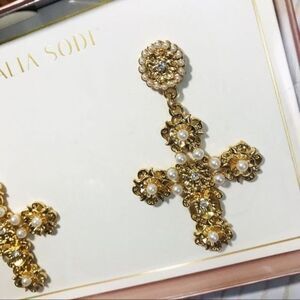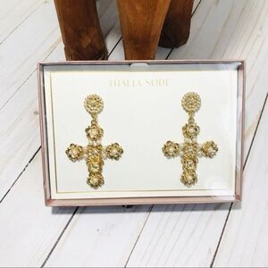 THALIA SODI Gold Statement Baroque Cross Pearl Drop Earrings Pierced NWT