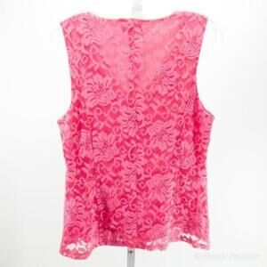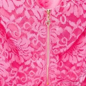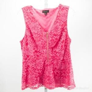 THALIA SODI Lace Zipper-Front Top Raspberry Pink L