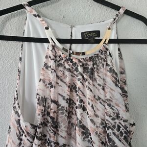 This stunning Thalia Sodi dress is sure to turn heads with its beautiful geometric pattern and multicolor design. The sleeveless dress features a jewel neckline and pullover closure, making it easy to wear and perfect for any occasion, whether it's a casual day out or a formal event. The dress is made from high-quality polyester and has a long flowy design with an asymmetrical hemline.