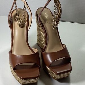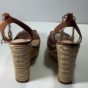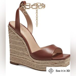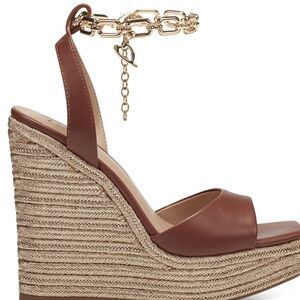 • Square-toe ankle-strap espadrille platform wedge sandals with adjustable buckle closure