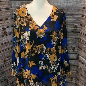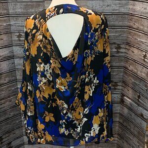Thalia Sodi Floral Blouse with Dramatic Sleeve and Draped Back
