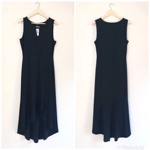 THALIA SODI Black Sleeveless Stretch Knit Midi Dress High Low Hem Small New