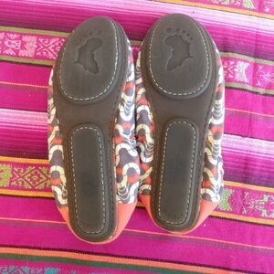 THANDO'S Orange, Green & White Squiggle Cotton Foldable Ballerina Flats 9