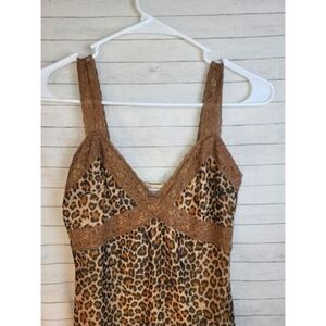 THATS SO FETCH LEOPARD PRINT & BLACK LACE MINI SLIP DRESS, SZ 8