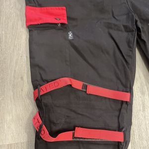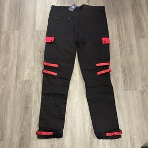 Introducing the THC Men's Red/Black Strap Men's Chino Pants in Size 2XL, brand new with tags. Perfect for travel or casual wear, these pants come in a stylish multicolor and feature a trendy strap accent with velcro closure.