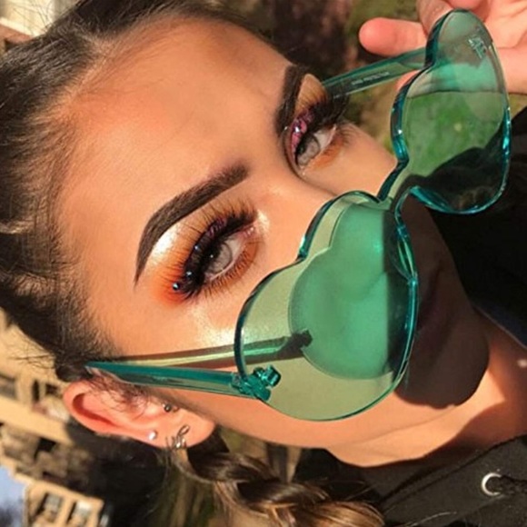 ✨THE AND! MONEY GREEN Y2K RIMLESS HEART SUN GLASSES ✨