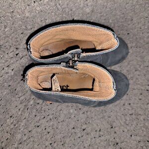 THE ART COMPANY-Detailed Wood Wedge Heel Booties-Gray Nubuck-Sz 37-EXCELLENT