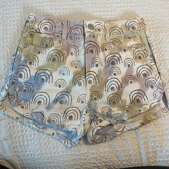 THE ART OF ANTHROPOLOGIE HANNAH LEATHERS rainbow drawn denim shorts size 26 NWT