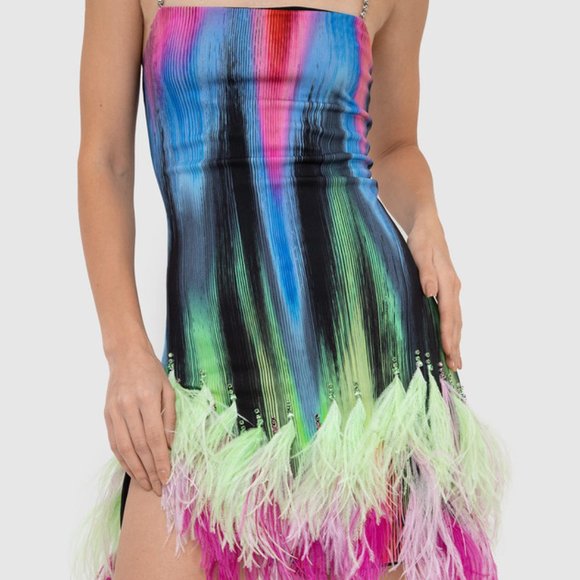 FUJIKO MINI DRESS IN FEATHER PRINT