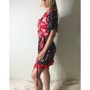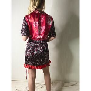 THE ATTICO Camila Silk Floral Pink Contrast Flounce Sleeve Wrap Mini Dress US 2