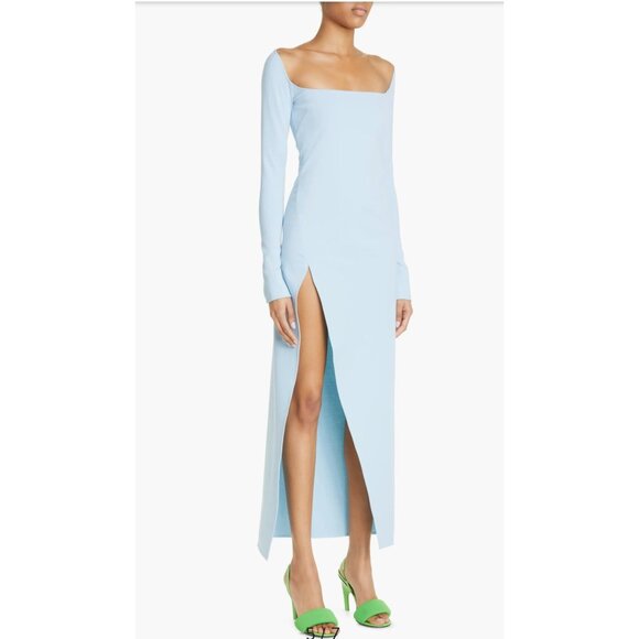 THE ATTICO Lawrence Side-slit Jersey Maxi Dress gown In Baby Blue Size 36