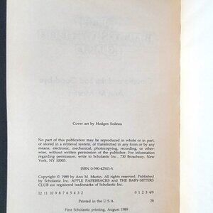 THE BABYSITTERS CLUB BOOKS BY ANN M. MARTIN LOT OF 15 BY ANN M. MARTIN APPLE FICTION PUBLISHING VINTAGE 1990s SCHOLASTIC COVERS, good to very good clean condition from a smoke-free home. Some of the books look like they were never read and some show wear. No names, marks, or writing in any of these books; however, #19 has some cover damage front and back and #24 has personal birthday message w/sticker (please see pictures). Books included as follows: