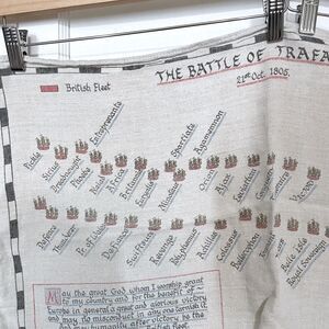 THE BATTLE OF TRAFALGAR tea towel Map Battle Plan Irish Linen British Fleet Vintage