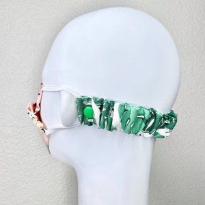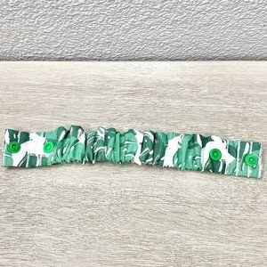 Ear saver is handmade with love. As this is a multiple quantity listing & handmade, the product you get may differ slightly from the one pictured. Multiple sizes available. Measure from the back of one ear to the back of the other ear and deduct an inch for sizing. It is about 1" wide and the length depends on the size. Has snap closure.