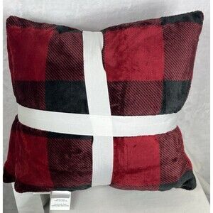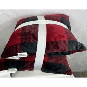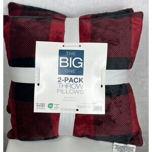 THE BIG ONE 2-Pack Throw Pillows Buffalo Check Plush Red Black 16x16 NEW