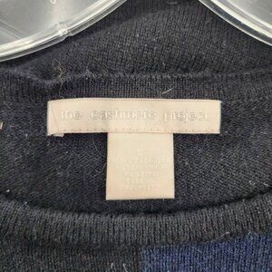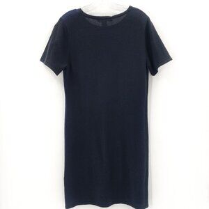 THE CASHMERE PROJECT Black Navy Short Sleeve Colorblock Cashmere Sweater Dress Shift Sheath Stretch Knit Mini Crew Neck