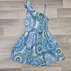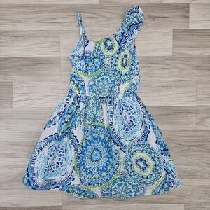 THE CHILDREN'S PLACE Girls Blue Mosaic Ruffle Fit And Flare Dress Size 7/8