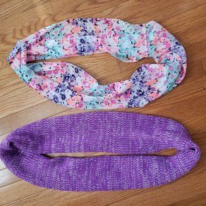 THE CHILDREN'S PLACE KNIT PURPLE SCARF & FLORAL SHEER SCARF-OSFA
