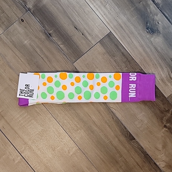 THE COLOR RUN knee high socks polka dot purple green orange neon