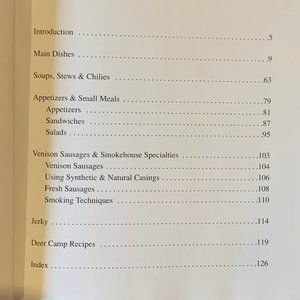 Includes main dishes, soups, stew, chilies, appetizers, sandwiches, salads, sausages, smoking techniques, jerky and deer camp recipes