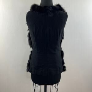 THE CUE by Cher Qu Black Fur Vest Fitted Waist Hook & Eye V-Neck Size S Small