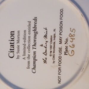 THE DANBURT MINT, CITATION, CHAMPION THOROUGHBREDS BY SUSIE MORTON, 1997. PLATE NUMBER G6485. 8 INCH.