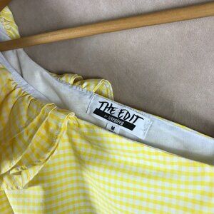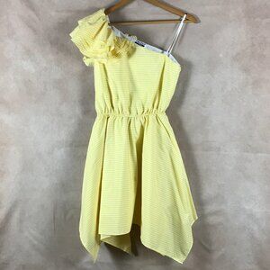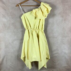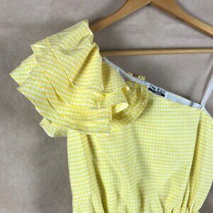 THE EDIT Yellow Gingham Plaid One-Shoulder Asymmetrical Sun Dress NWT MEDIUM
