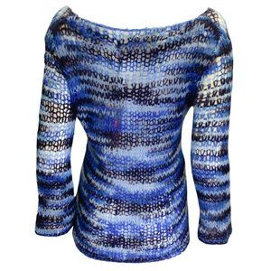 Description: The Elder Statesman Blue Multi Cashmere Knit Holy Bell Sweater in Shades of Lapis / Shades of Blue.