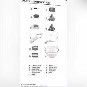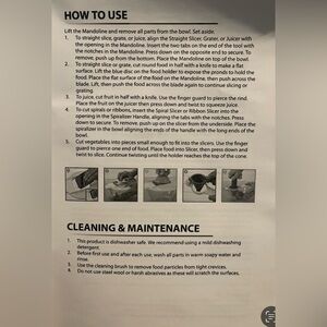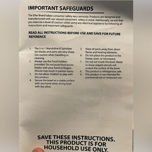 1. The 5-in-1 Mandoline & Spiralizer Set blades and parts are very sharp. Use caution when handling or cleaning.