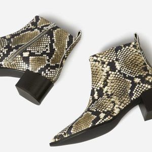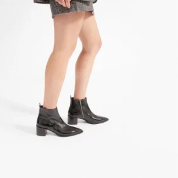 No longer available in Black Patent on Everlane NWOT Size: 7 Color: Black Patent Narrower fit Sizes 5–6.5 run large Sizes 7–8.5 run true to size Sizes 9–11 run small 100% Italian leather Spot clean with a cloth. 2-inch stacked leather heel Made in Lastra a Signa, IT Will add more pictures soon