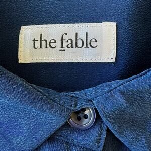 THE FABLE 100% Silk Button Up Shirt Women's Size 8 XS Blue Orchid Top Blouse