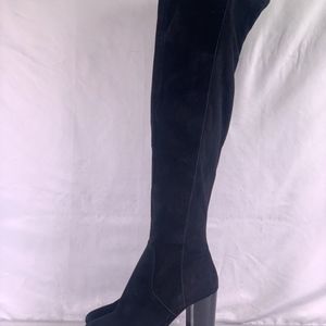 Never worn but there is scuff around toe due to no box - Please Look at Photos Closely - Round toe - Shinny Block heel measures 3.5in. - Suede upper - Zipper measures 21in. - Boot opening measure 16in around - US 7 UK 4 EUR 37