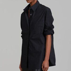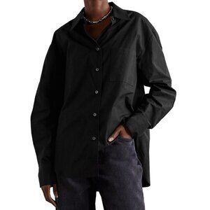 THE FRANKIE SHOP LUI BUTTON-DOWN OVERSIZED SHIRT BLACK ORGANIC COTTON LARGE