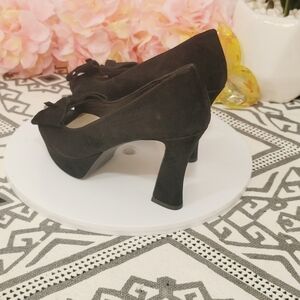 THE Franco Sarto The Artist Collection Leather Suede Heels in black are Size 8M
