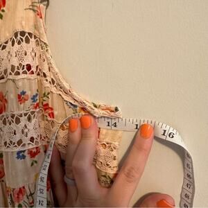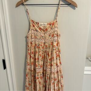 I adore this super pretty and RARE designer THE GREAT. cream red floral cotton lace button front maxi strappy dress