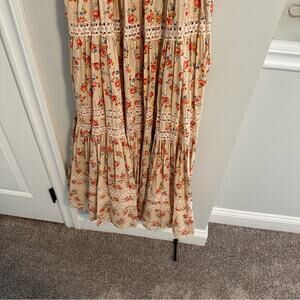 THE GREAT. Cream Red Cotton Floral Lace Tiered Maxi Dress 0 Small