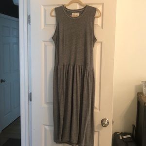 Sleeveless gray midi dress. Relaxed fit with gathered waist. Perfect for casual outings. Love this but it’s a bit too big for me.