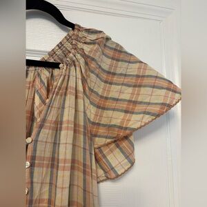 An instant classic, this western-inspired THE GREAT. dress features lightweight fabric, a voluminous drape, and low-key plaid patterning. This dress by The Great features a button front with flutter sleeves and a flowy hem. Fit is true to size through the bust and roomy through the body.