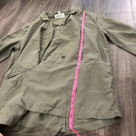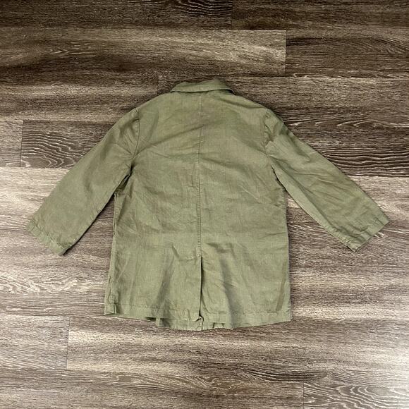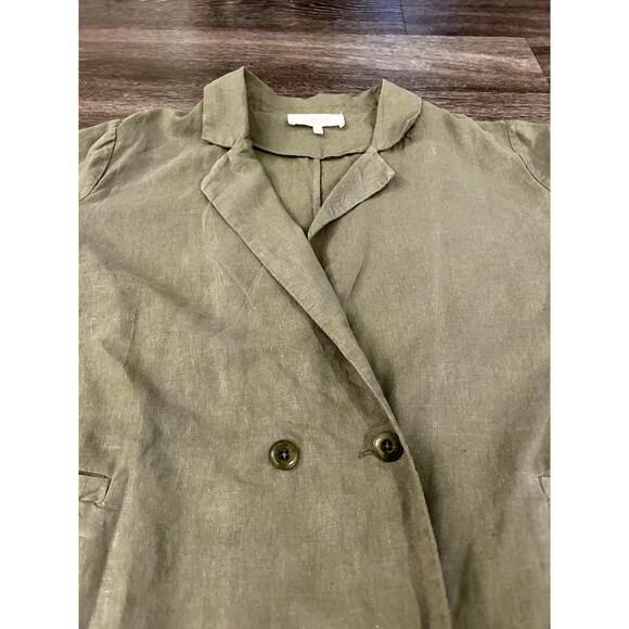 THE GREAT. Olive Green Linen Cotton Oversized Blazer Size Medium Double Breasted