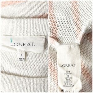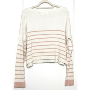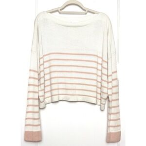 THE GREAT Peach Striped Cotton Knit Boatneck Pullover Cropped Sailor Sweater L