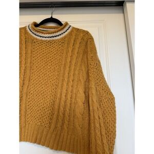 THE GREAT The Cable Roll Pullover Sweater In Yellow Size 0 Wool Blend Fisherman. Condition is Pre-owned - Excellent. Shipped with USPS Ground Advantage.