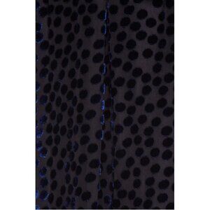 Polka dots of cobalt velvet float airily atop the sheer silhouette of this midi-length dress that softly glints under evening lights. Cut in the softest velvet dot fabric, this dress has a smocked yoke, a voluminous body, and slightly billowed sleeves.