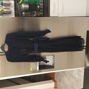 💕THE GREAT💕 The Merry Dress ~ Navy Blue Velvet Burnout Polka Dot Midi M NWT