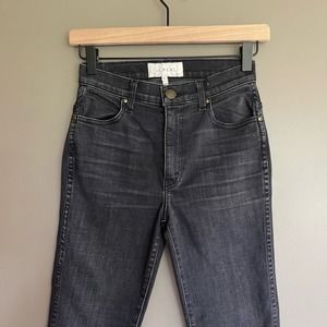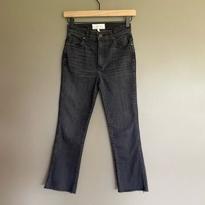 THE GREAT. The Nerd Raw-hem Jeans In Durango, Washed Black Color, Size 24, Kick Flare, Straight Leg, High Rise, High Waist, High Waisted, Comfortable Stretch Denim,